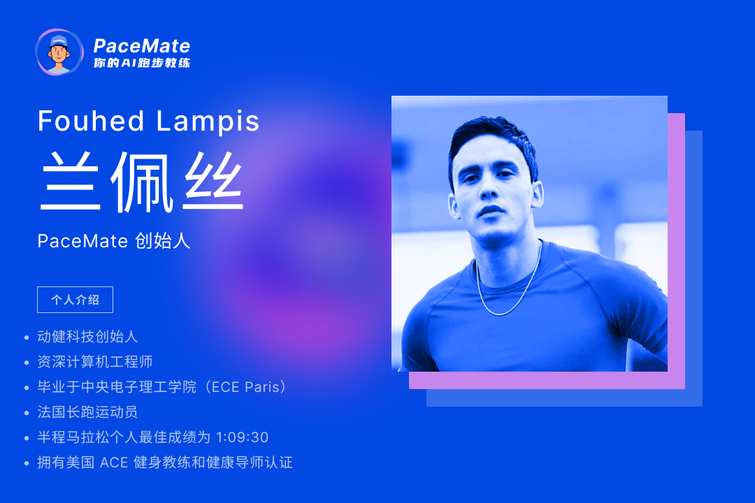 PaceMate创始人兰佩丝是长跑运动员,半马最佳成绩1:09:30。拥有美国ACE健身教练和健康导师认证,毕业于中央电子理工学院(ECE Paris),既深谙科学原理在实际训练中的应用,又是精通技术的资深计算机工程师,能将专业运动员的实战经验转化为AI算法,铸就了PaceMate“科学+陪伴”的核心价值。