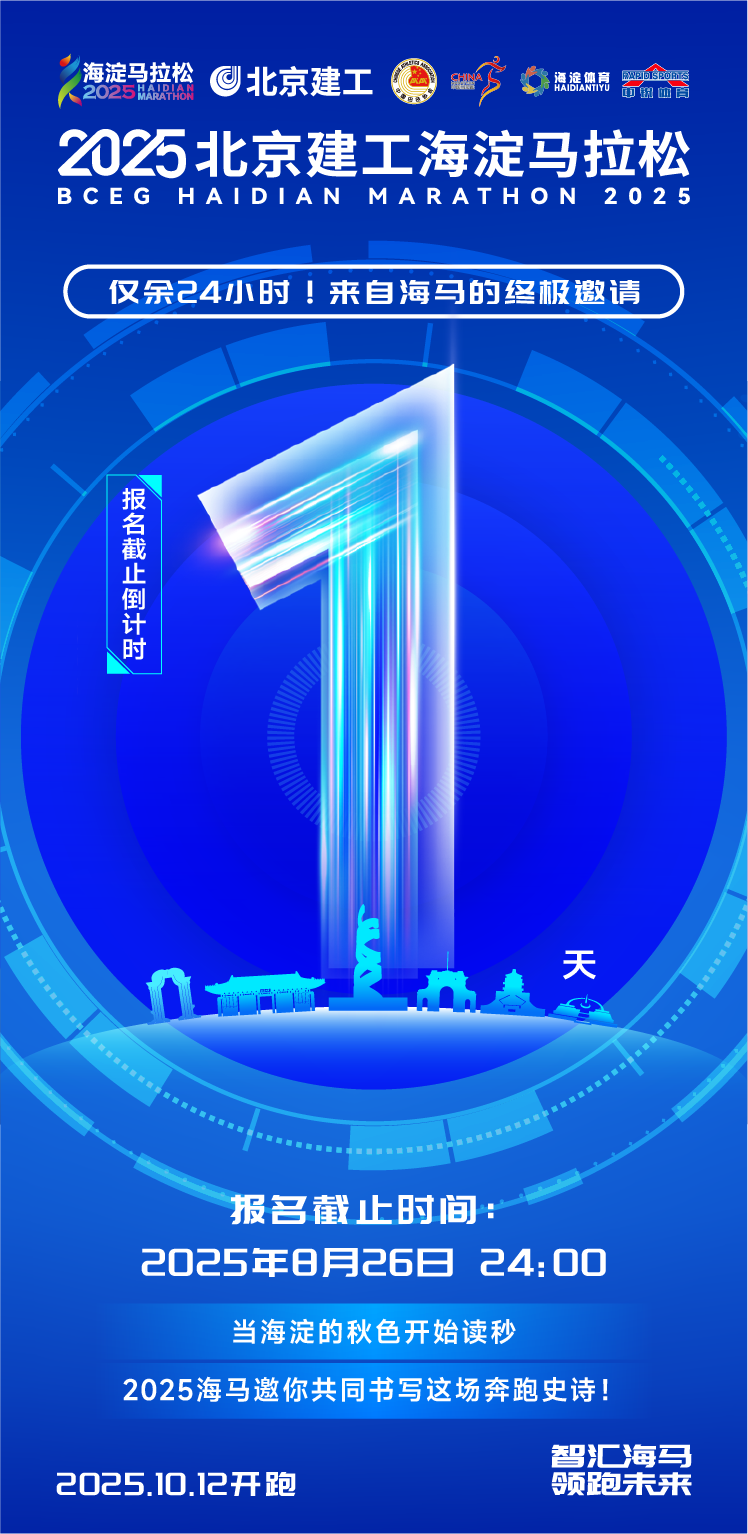 今夜(8月26日)24时,2025北京建工海淀马拉松报名通道将正式关闭!